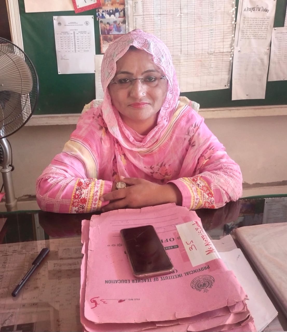 MS.Nargis Khatoon Zardari holds M.phil education and is serving as Head Mistress in PITE, Sindh.